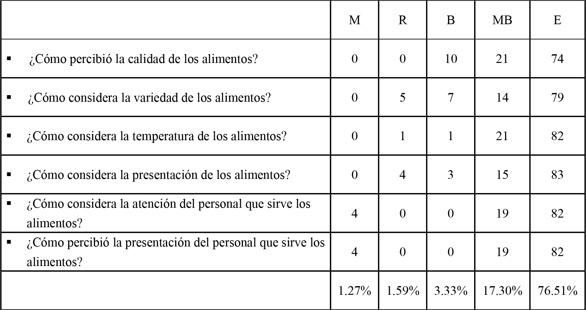 Mediante los resultados obtenidos, se concluye que la percepción de la calidad global de la hotelería hospitalaria en la maternidad del HSIH supera el 95% de satisfacción. Esto es, 78.87% que respondieron excelente