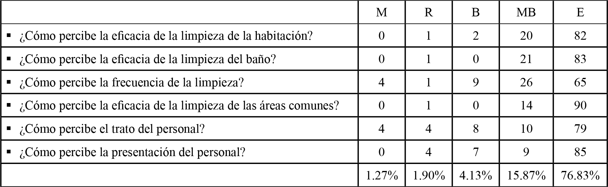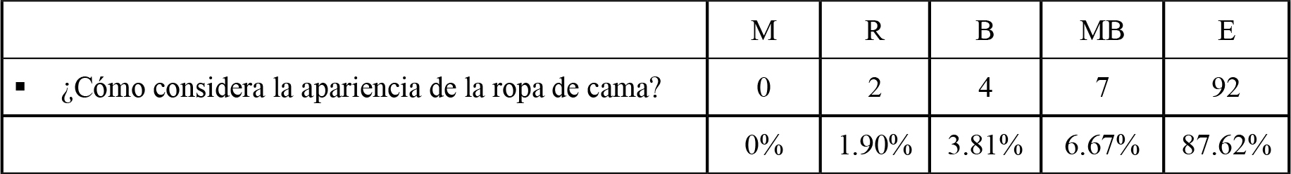 En la actualidad el Departamento de calidad pasa por las habitaciones y hace una consulta de cómo se ha encontrado el paciente respecto de la atención de enfermería y de la limpieza en general. La hotelería hospitalaria