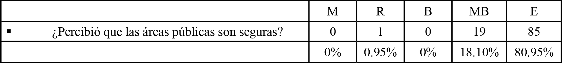 (83 usuarias) y 16.23% muy buena (17 usuarias). Los aspectos más destacados son comunicación, alojamiento, atención al cliente, seguridad y mantenimiento. En consecuencia los ajustes que se deben realizar son mínimos.