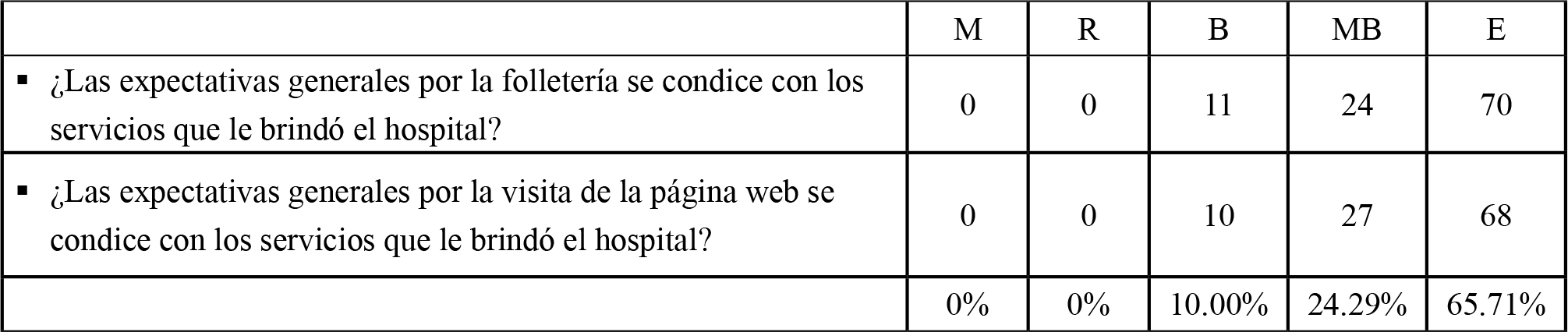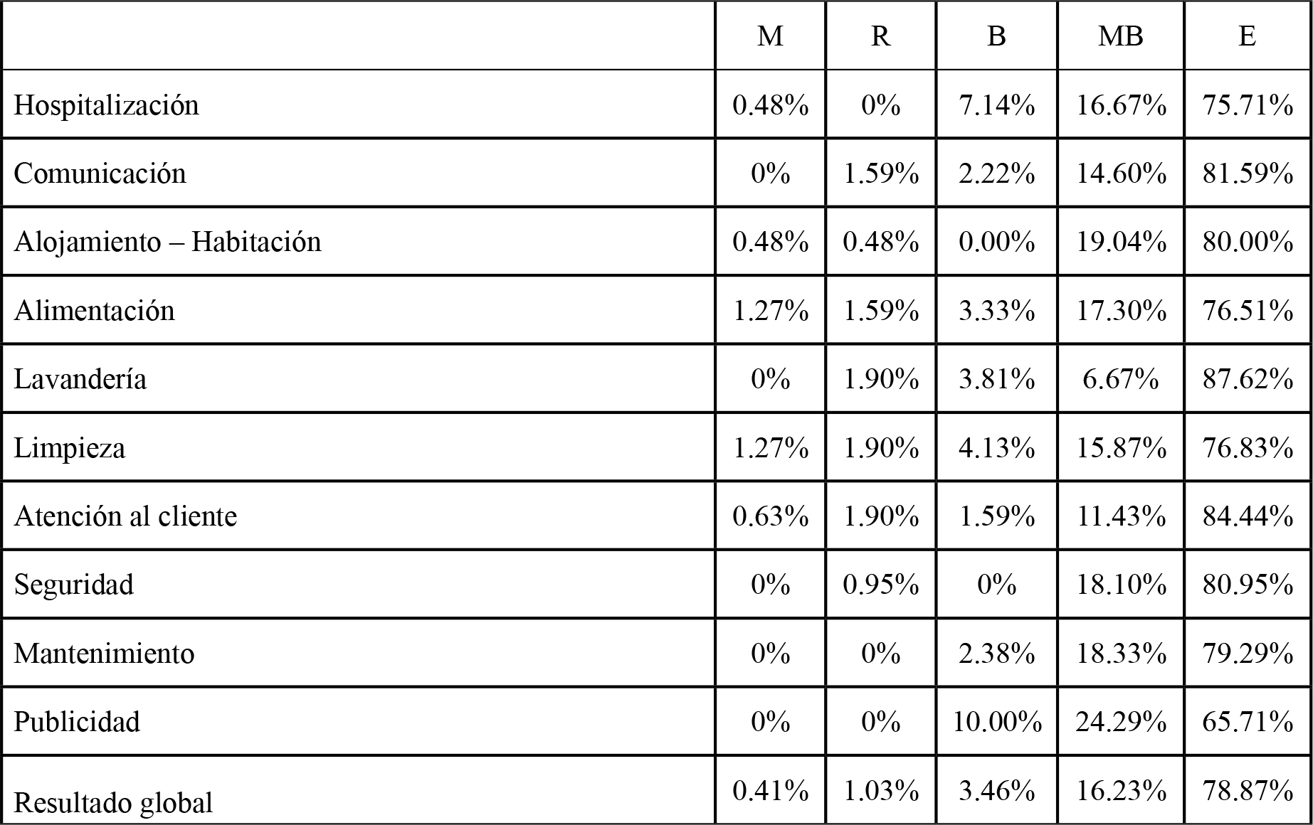 diferentes servicios. No solo los correspondientes a la hotelería hospitalaria, sino también sobre atención recibida
