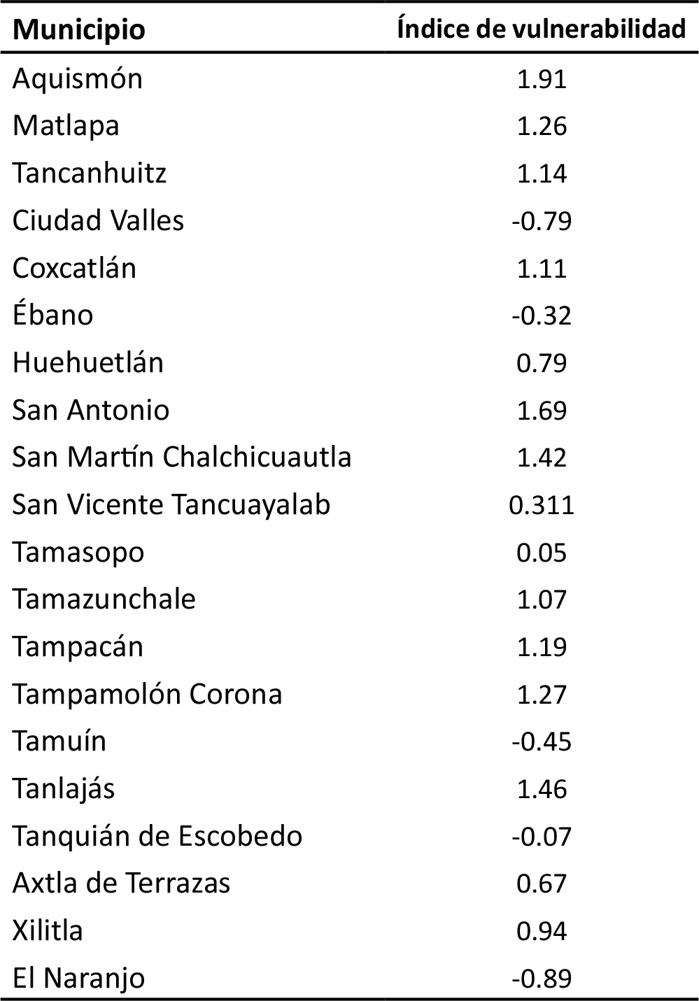 services, and vulnerability to climate change, in the municipalities of the Huasteca Potosina area. Research