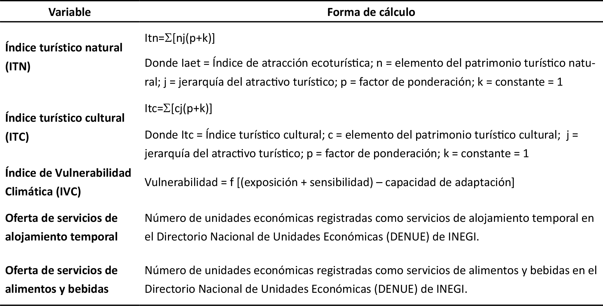 data were obtained from the natural and cultural tourism index by municipality, the number of temporary