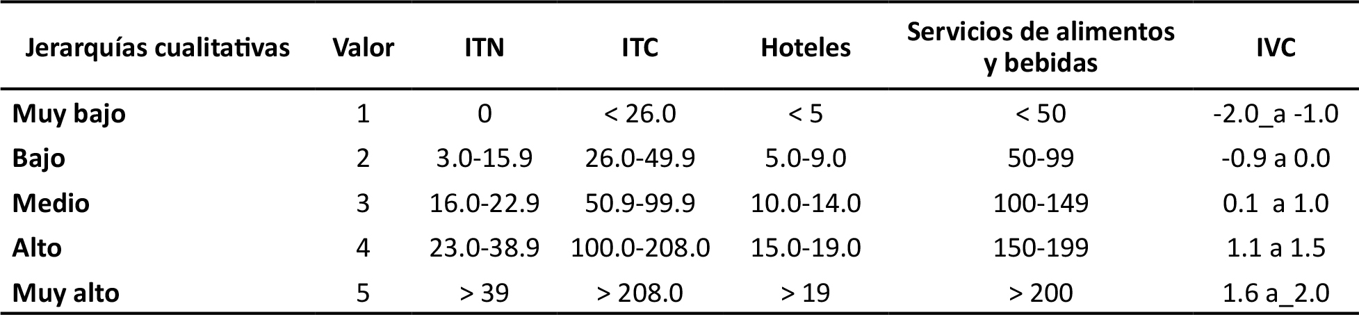 Como siguiente paso en el análisis, se jerarquizaron los valores de los indicadores de la Tabla 3 en cinco