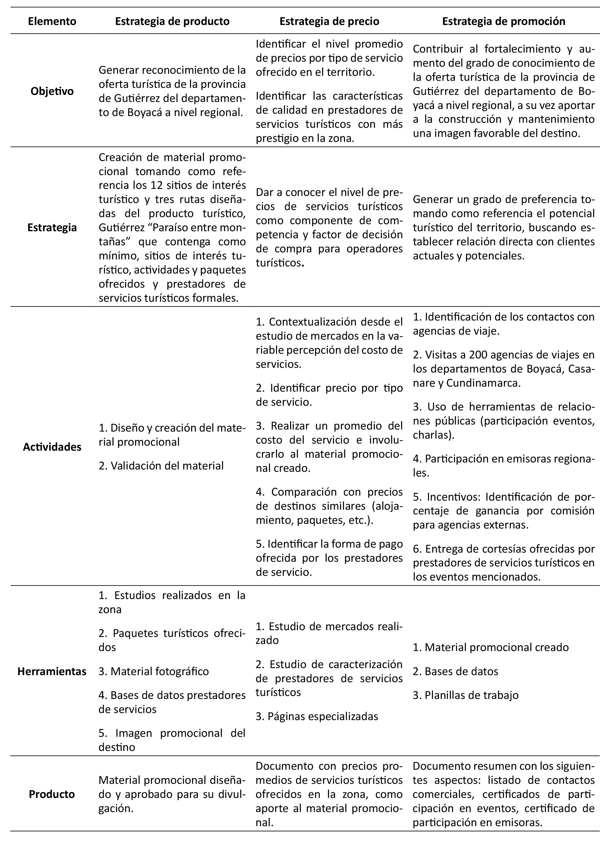 el departamento de Boyacá y Orden de prestación de servicios N.° 036-2019, Diseño de un plan de marketing