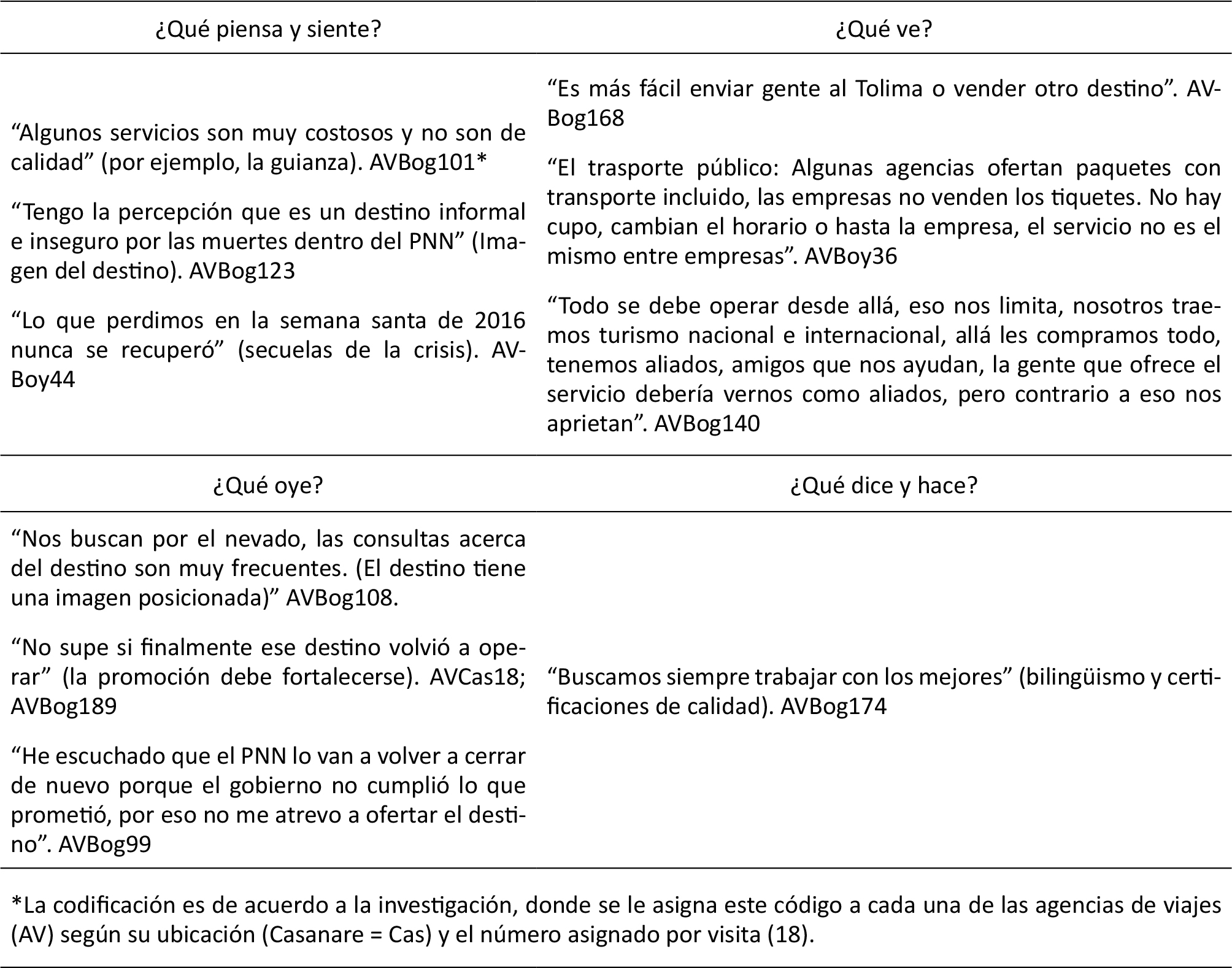 Mapa de empatía, principales hallazgos desde las agencias de viajes, Producto Gutiérrez