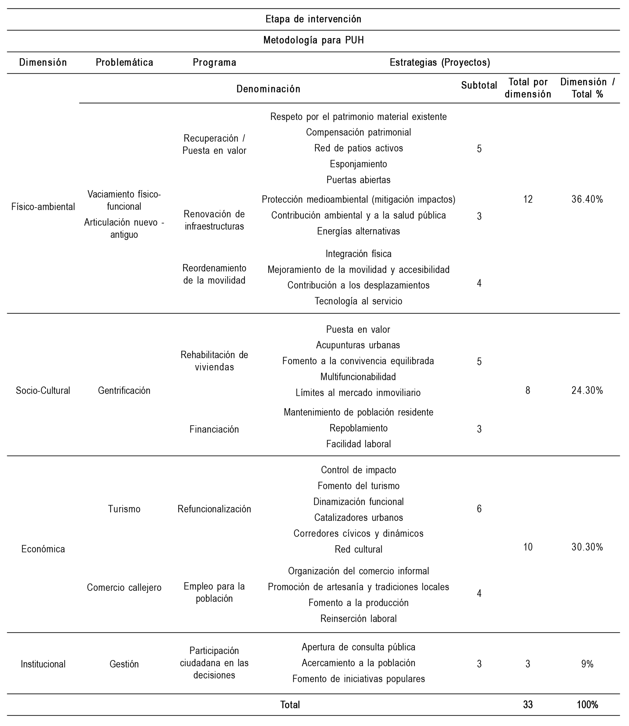 intervención y gestión del PUH, pensada como un primer acercamiento para la aplicación de este concepto,