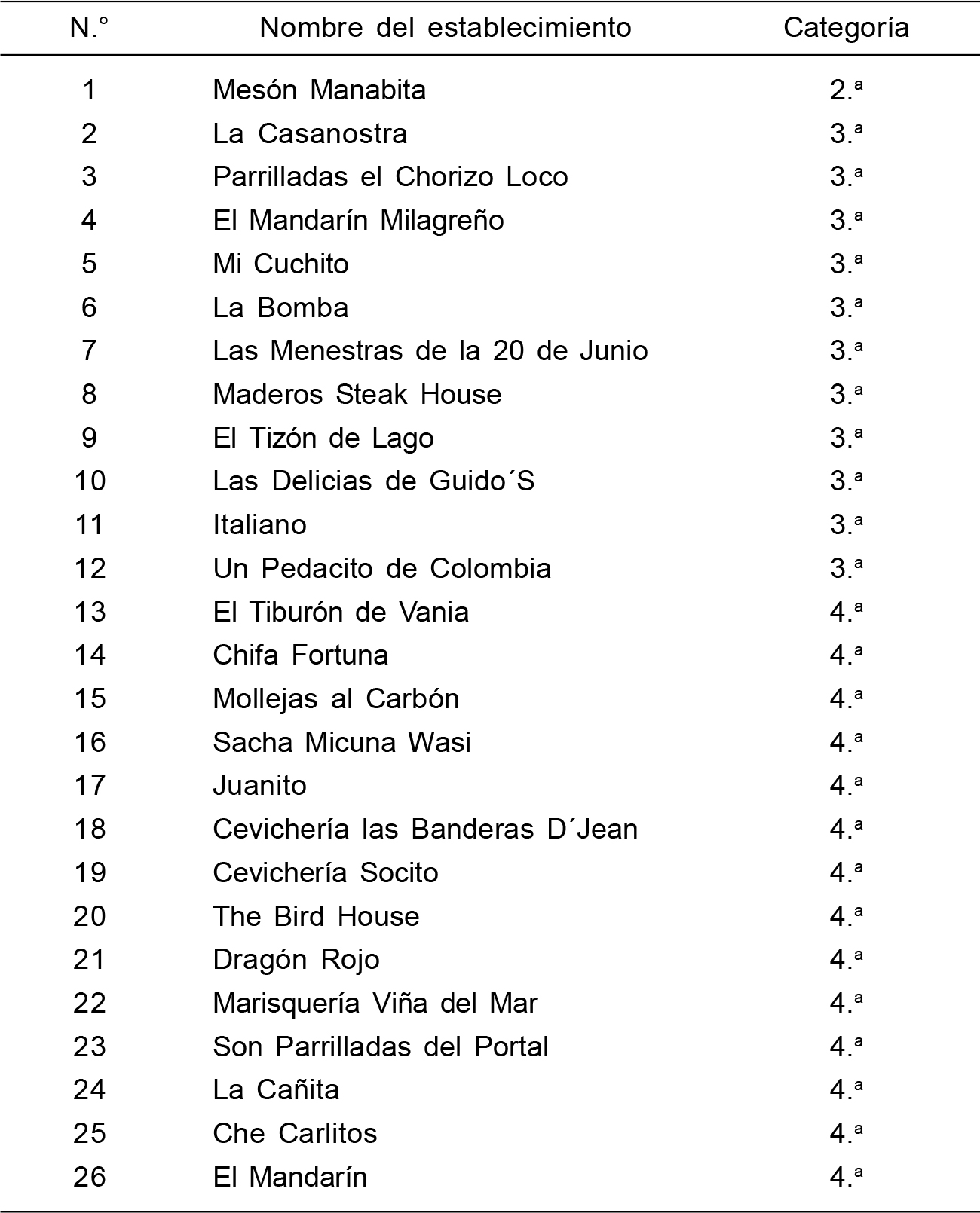 Son 34 restaurantes registrados, de los que funcionan solo 26: cuatro de ellos, poseen categorías diferentes