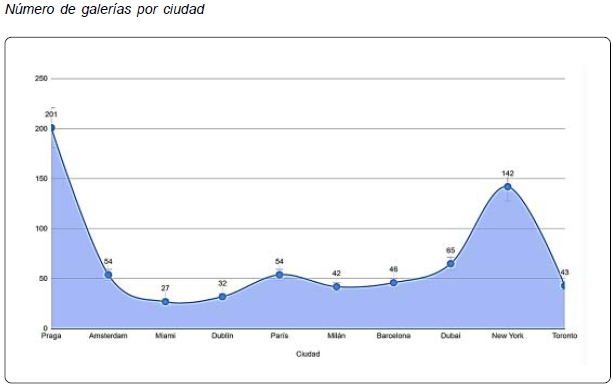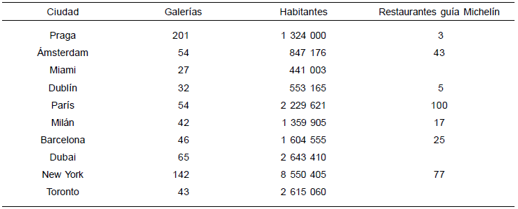 Al respecto, TotallyMoney (2022), entidad que conjunta datos de la oferta cultural de las ciudades, indica 10 ciudades que cuentan con una oferta de galerías de artes (Tabla 1).