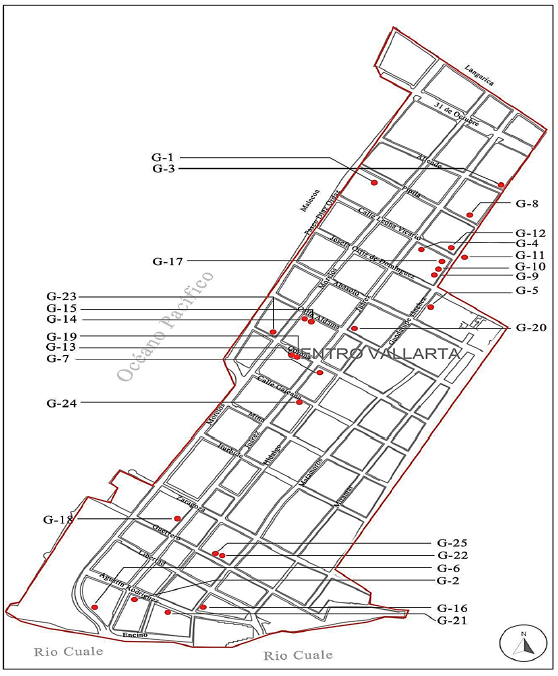 Es en la zona del centro o también llamado fundo legal, donde se encuentra ubicado el Distrito de Arte de Puerto Vallarta; entre las calles Allende, Abasolo, Juárez y Guadalupe Sánchez con especial énfasis en la calle Leona Vicario, ya que en esta se encuentran nueve galerías y empresas dedicadas a la comercialización del arte. Es importante señalar que, mientras se realizaba la presente investigación, nuevos emprendimientos (unidades económicas) se encontraban por inaugurar en la calle Leona Vicario y en la calle Guadalupe Sánchez.